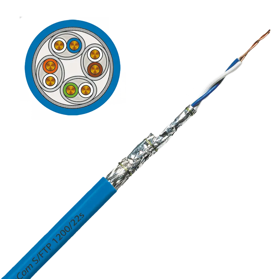 El cable Everon® Copper Datacom S/FTP 1200/22s está diseñado hasta 1300MHz y sus características de transmisión superan las especificaciones de la Categoría 7A+ según EN50288-9-1 IEC 61156-5. Elevados márgenes márgenes del sistema para el enlace completo según la última versión de ISO/IEC 11801 y EN 50173 (Series) se conseguirán utilizando el hardware correspondiente junto con este cable de cobre de gama alta. Debido a la muy baja desviación de retardo entre los pares, estos cables Everon® son especialmente Ethernet Gigabit y también para la transmisión de datos datos digitales para futuras aplicaciones de hasta 10 Gigabit Ethernet según IEEE 802.3an. El cable tiene una construcción y un peso reducido. Apantallamiento general con trenzado de trenzado de cobre estañado y cada par trenzado está individualmente con una lámina laminada (S/FTP). El cable cumple las normas de radiación de interferencias de clase B según EN 55022, así como la inmunidad según EN 55024, lo que permite la realización de redes compatibles con la CE.