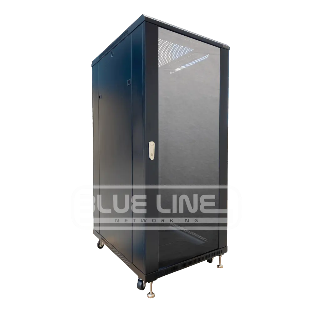 Con dimensiones de 800 mm de ancho y 1000 mm de fondo, el Rack BlueLine 42U está diseñado para acomodar una gran variedad de equipos de red y servidores, proporcionando suficiente espacio para una gestión óptima del cableado y una excelente circulación de aire. Esto garantiza que tus equipos operen en un ambiente óptimo, aumentando su rendimiento y prolongando su vida útil.